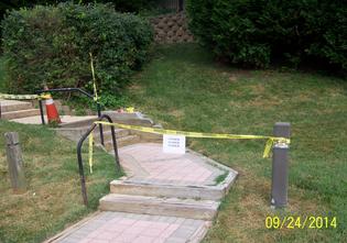 We are disappointed by the continued delay in implementation of repairs to the walkway leading from our C-level garage to the Village Square, but believe they will be completed very soon. In the meantime, we have asked our maintenance staff to (again) put up a barrier to that walkway from